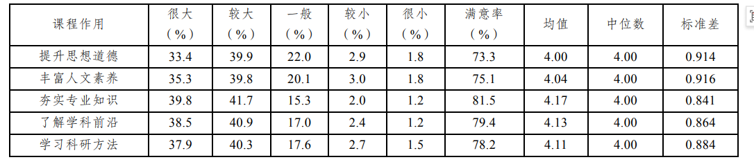 表5 研究生对课程教学作用的评价