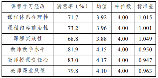 表4 研究生对课程学习经历的满意度