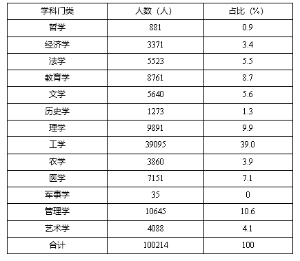 表1 研究生按学科分类情况